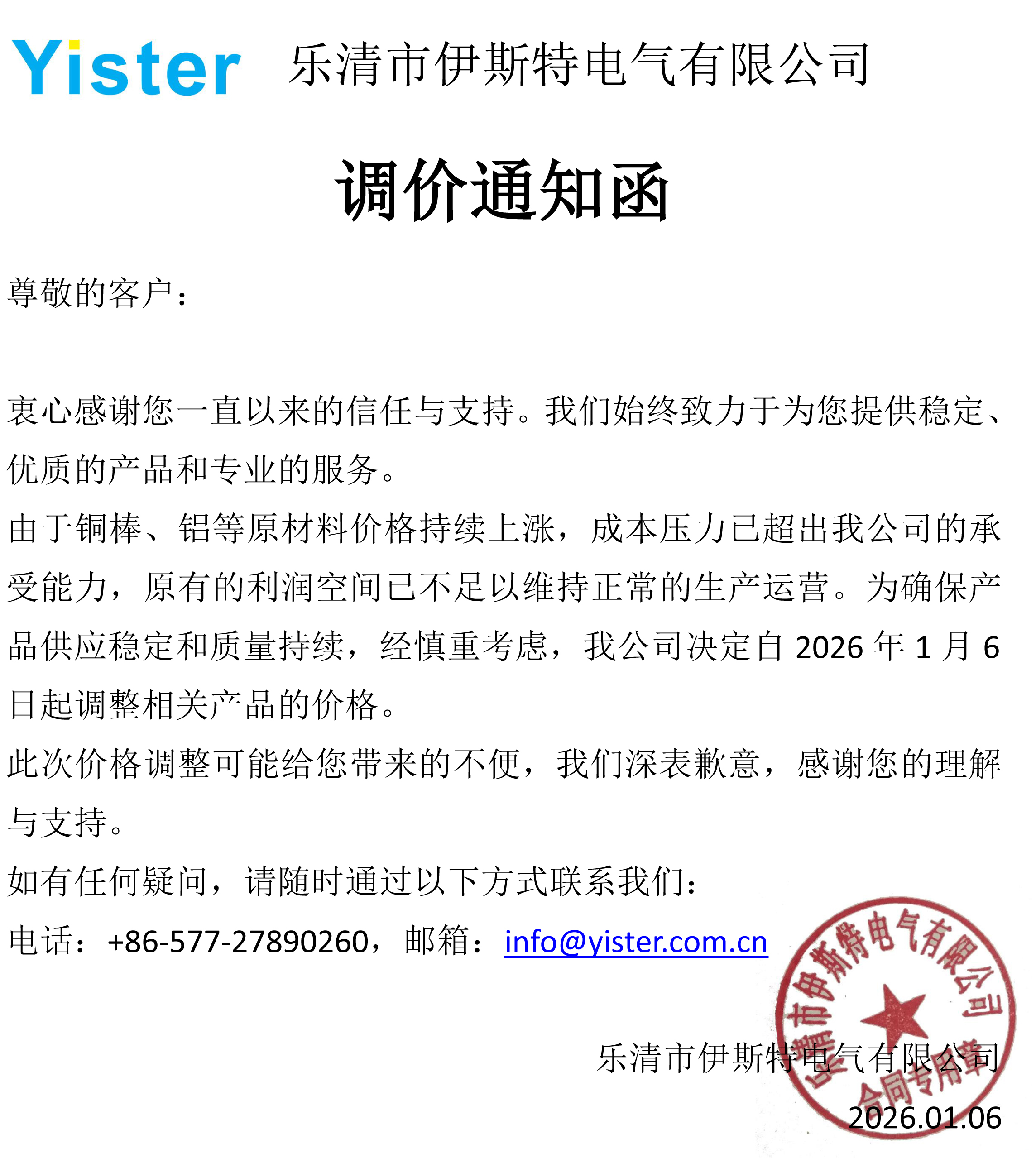 調(diào)價(jià)通知函