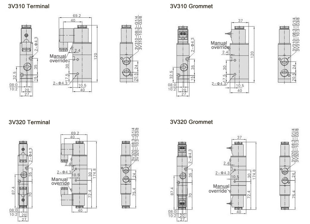 3V310-10 Pneumatic electric single coil directional control solenoid valve 3V310-08 3V320-08 3V310-10 3V320-10