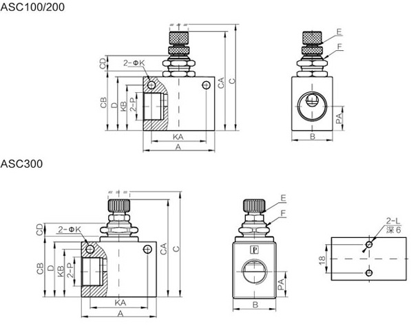 ASC series one-way throttle valve is small and compact structure.