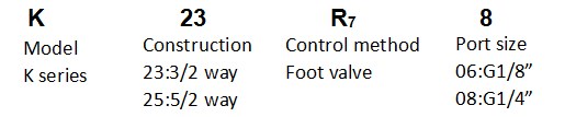 K23L7 K25L7 pneumatic foot valve adopts manual control reversing valve, the function of the valve is subdivided into two-position three-way and two-position five-way, with small size, beautiful appearance, and panel installation.